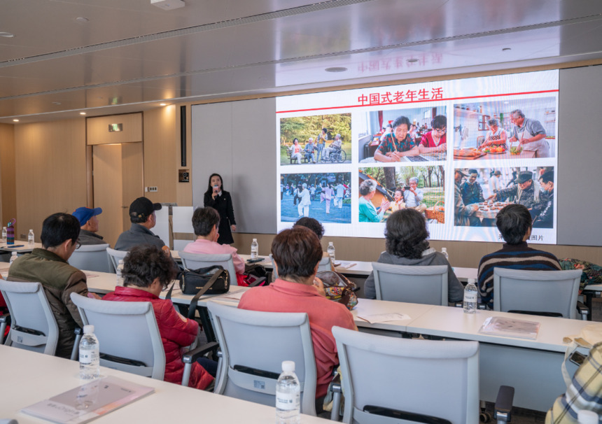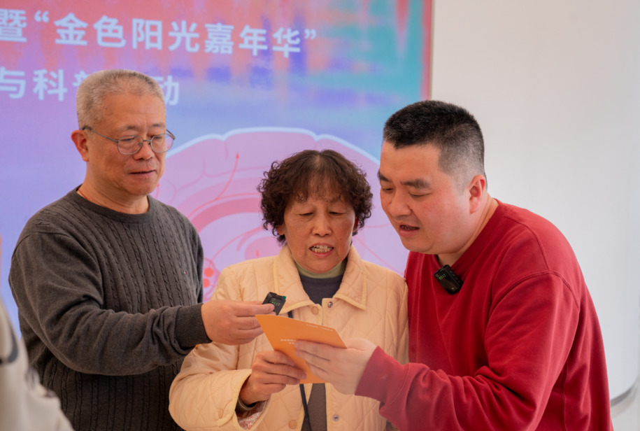 联影资深临床听力专家屠文河同大V晏秋秋互动,通过直播镜头展示联影医疗级听力服务全流程。线下,上海交通大学医学院听力与言语康复系副主任张丽萍教授,为活动现场的老人们开设听力健康科普讲堂,提升听力健康认知。