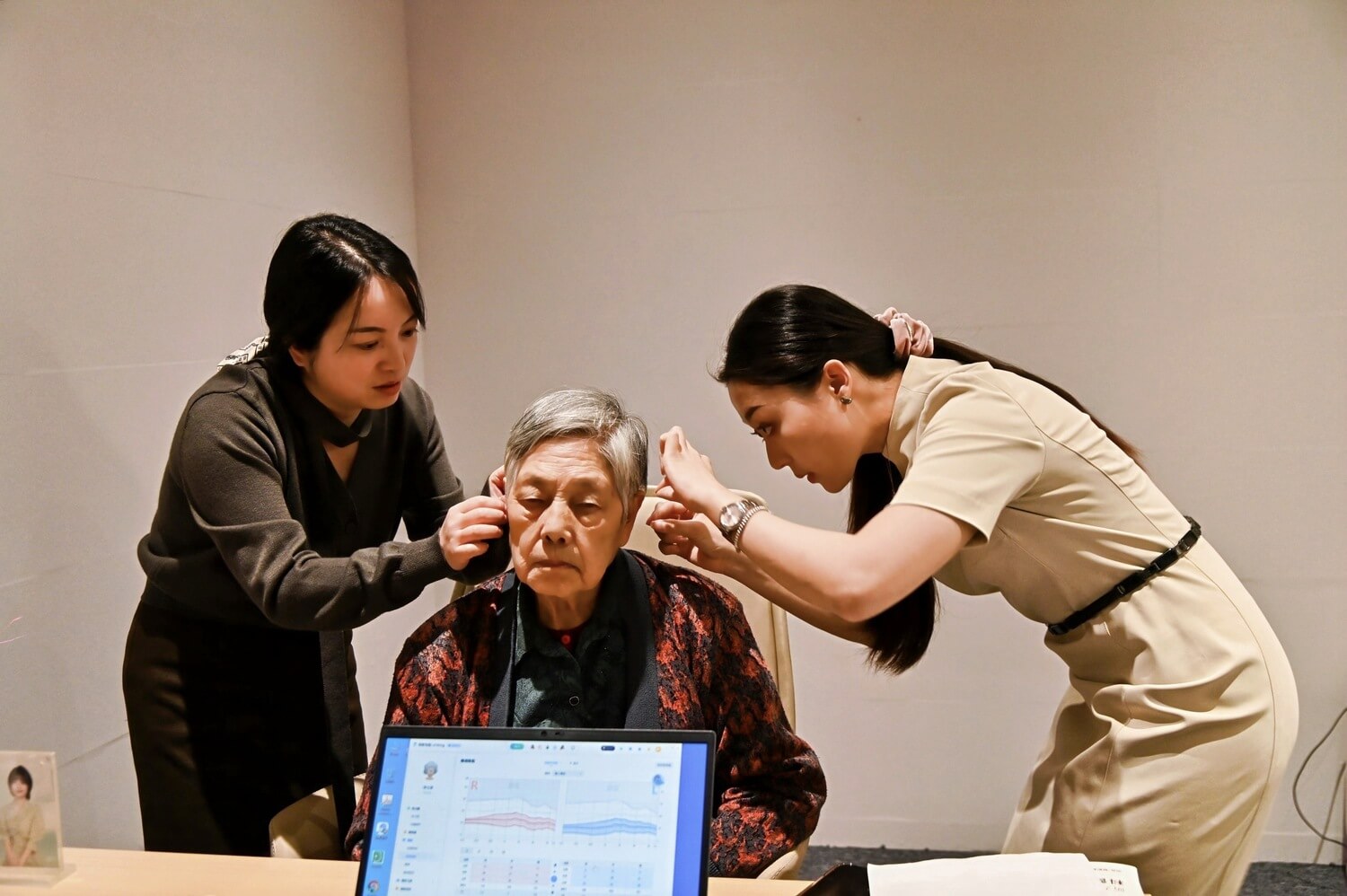 联影的听力专家们切实关怀长辈们的听力健康状况,以专业的医疗级测听服务为泰康之家·蜀园的老人们进行全方位的免费听力健康检测。
